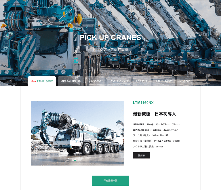 ゲットベターではクレーン会社のホームページを多数制作。