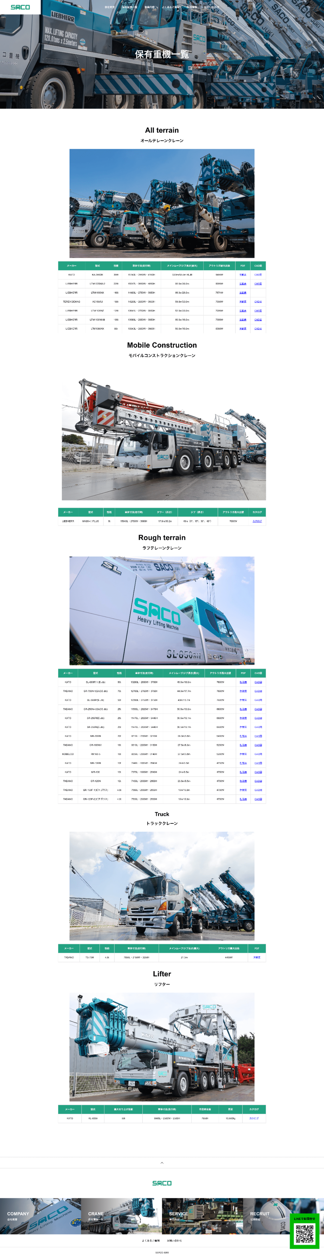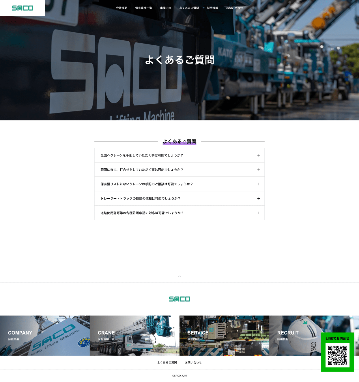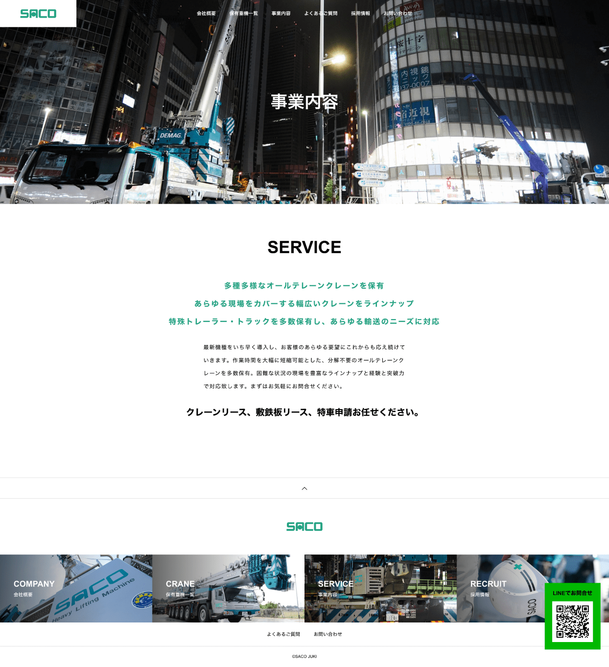クレーン会社のホームページを