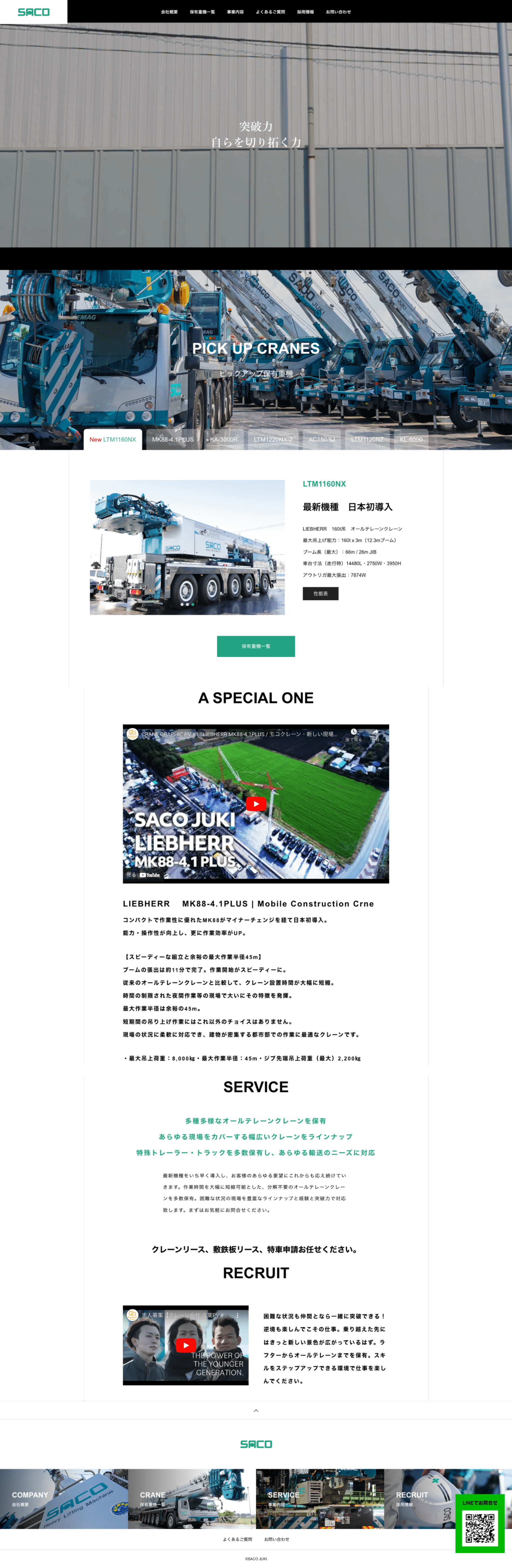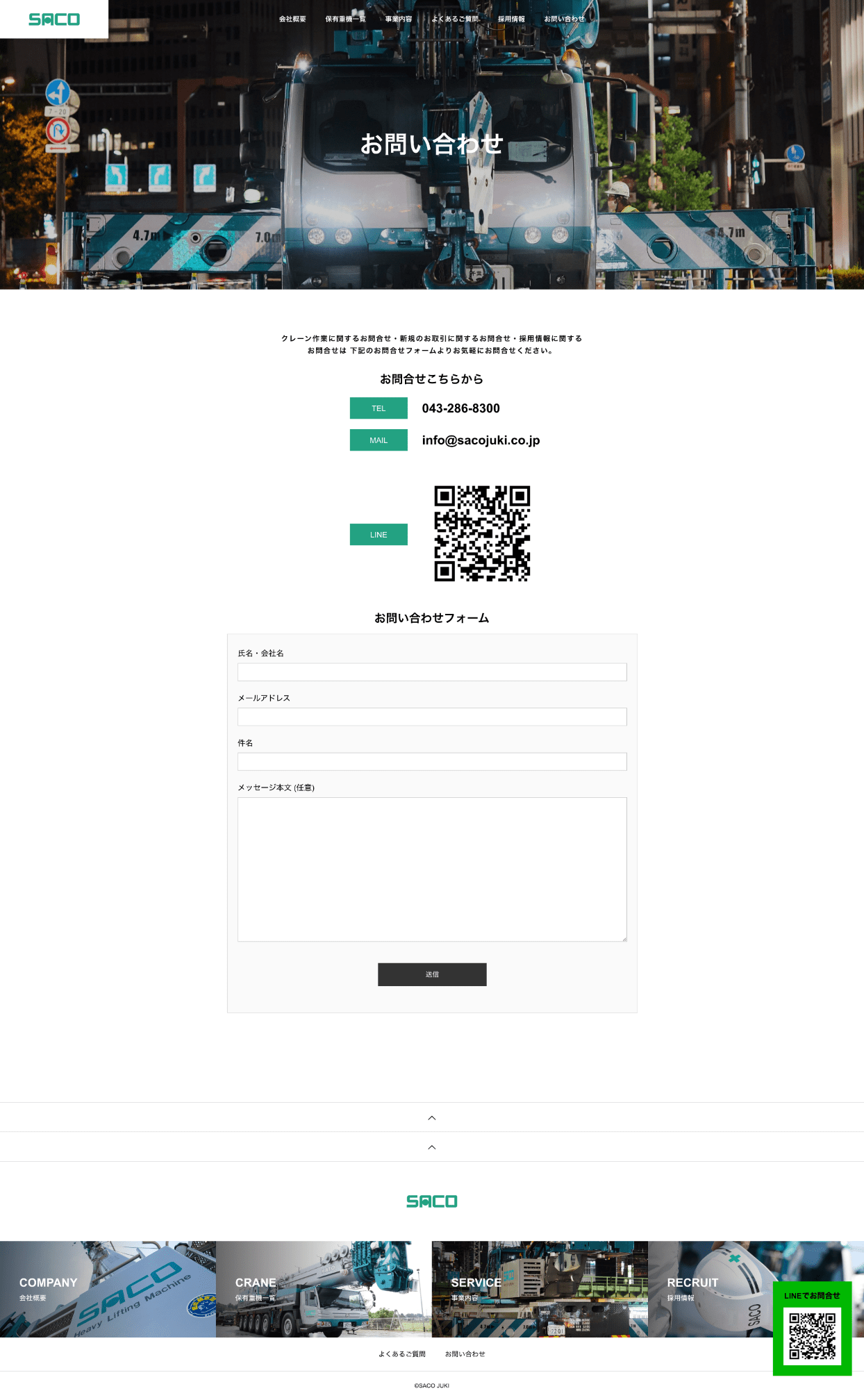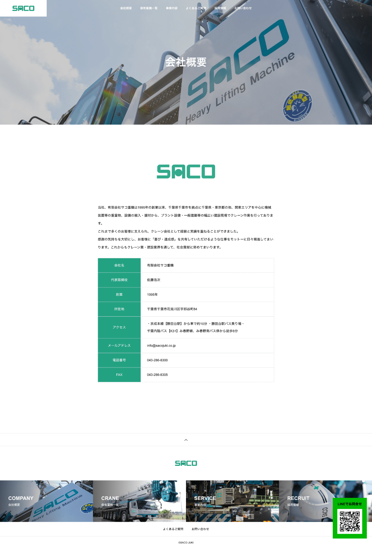 クレーン会社のホームページを